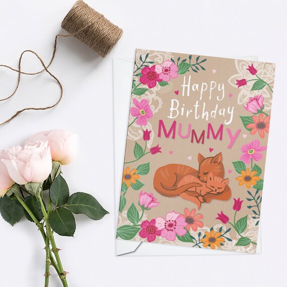 Happy Birthday Mummy Card Cute Card for Mummy Cat and Kitten | Etsy